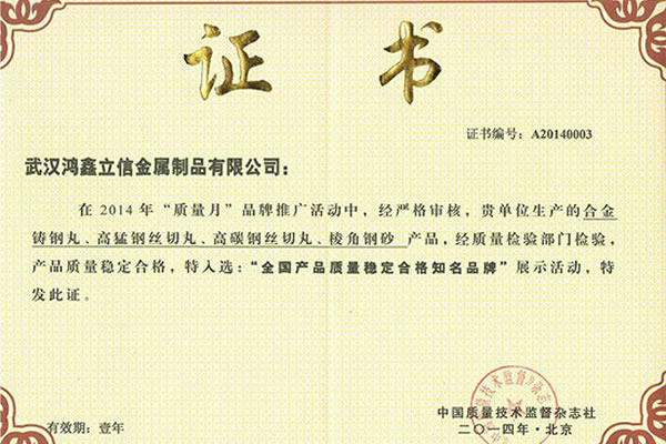 武漢鴻鑫立信金屬制品有限公司主要從事鋼丸、鋼絲切丸、鋼砂等除銹防腐耗材的生產(chǎn)和銷售。公司所有產(chǎn)品均通過ISO9001**質(zhì)量認(rèn)證,2014年更獲得了第三屆中國(guó)金屬磨料行業(yè)具有影響力品牌-華尊獎(jiǎng)。董事長(zhǎng)陳群芝女士從事行業(yè)17年來專注為客戶節(jié)約鋼丸消耗成本,2014年獲得了華尊獎(jiǎng)-中國(guó)品牌建設(shè)實(shí)踐百名創(chuàng)新很好企業(yè)家的榮譽(yù)。服務(wù)過的國(guó)家建設(shè)項(xiàng)目有:北京鳥巢體育館、遼寧號(hào)航母、杭州灣跨海大橋、南海軍艦、成都雙流**機(jī)場(chǎng)、南車集團(tuán)動(dòng)車檢測(cè)中心、武漢火車站、武漢天興洲大橋等,同時(shí)服務(wù)的行業(yè)囊括橋梁制造、船舶制造、汽車制造、火車車輛制造、大理石打磨、鑄件清砂、各種機(jī)械制造表面清理等。鴻鑫鋼丸,值得信賴。